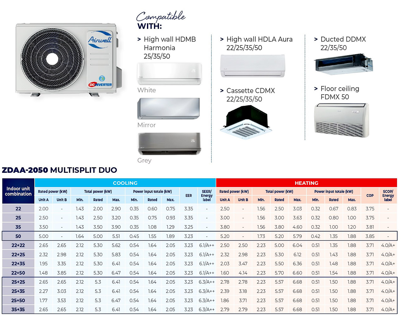 Characteristic features of the Airwell Inverter Multisplit outdoor unit ZDAA-2050-09M25