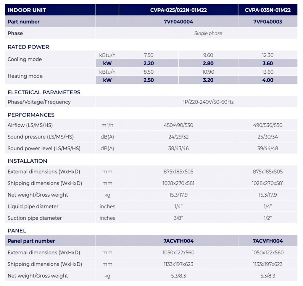 Product advantages of the Airwell inverter VRF Cassette indoor unit (cooling & heating) CVPA