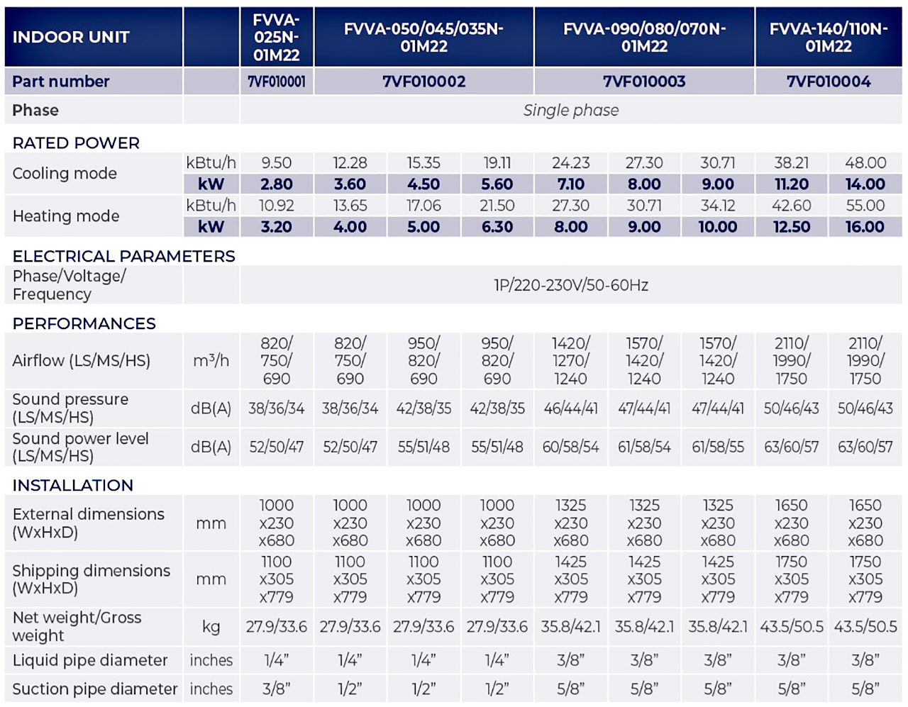 Product advantages of the Airwell inverter VRF Floor Ceiling indoor unit (cooling & heating) FVVA