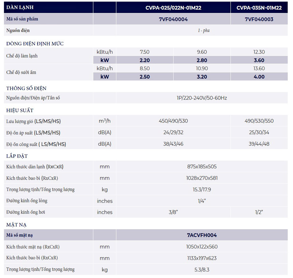 - Tích hợp bơm ngưng tụ.